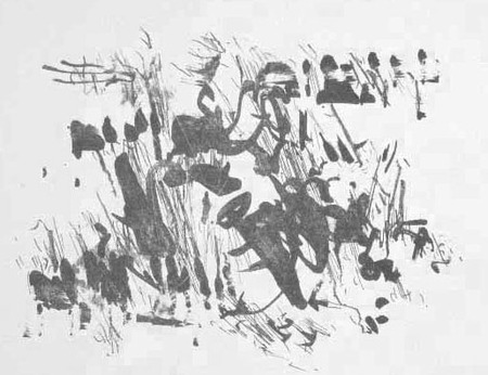 Ätzradierung, vernis mou, Abdeckverfahren, Aussprengtechnik; auf Zinkplatte; Druck: einfarbig, schwarz, auf weißem oder getönten Papier- WV-Nr: D-oJ-2277