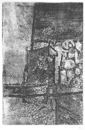 Ätzradierung; vernis mou, Aquatinta, Aussprengtechnik; auf Zinkplatte; Druck: einfarbig, schwarz auf Papier- WV-Nr: D-1966-3229