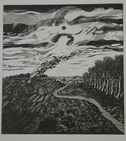 Ätzradierung, vernis mou, Aussprengverfahren, Aquatinta; auf Zinkplatte; Druck: einfarbig, schwarz, auf Papier- WV-Nr: D-1973-4212