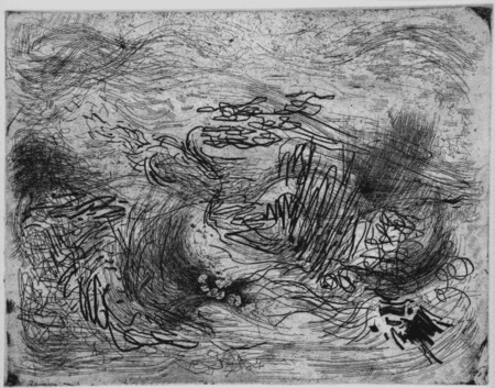 Ätzradierung, vernis mou, Abdeckverfahren; auf Zinkplatte; Druck: einfarbig, schwarz, auf weißem oder getöntem Papier- WV-Nr: D-1949-4502