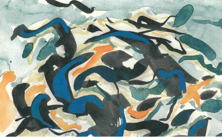 Titel: WasserspieleAquarell, Tusche, Gouache WV-Nr: Z-1970-1966 Gattung: Zeichnung Jahr: 1970 Maße: 13 x 21,5 Standort: klären