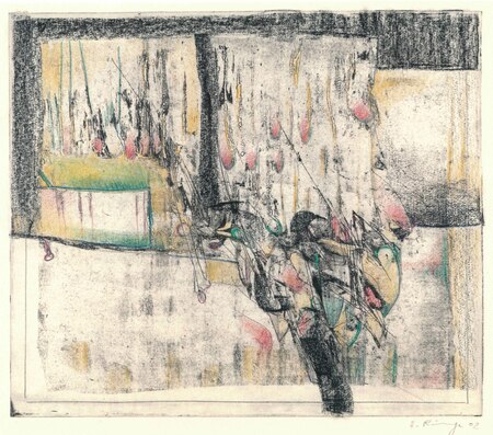 - Technik: Farbstift- und Fettkreidezeichnung auf Radierung
