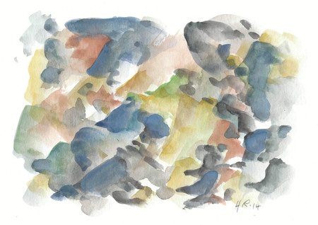 Pinselzeichnung; abstrakt; alle Grundfarben-Töne, Braun-, Ockertöne, Schwarz; auf weißem Aquarellkarton- WV-Nr: Z-2014-4715