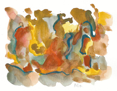 Pinselzeichnung; abstrakt; alle Grundfarbentöne, Grau, Braun; sehr kräftig; auf weißem Aquarellkarton- WV-Nr: Z-2014-4730