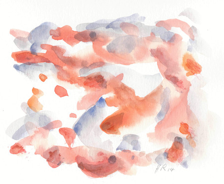 Pinselzeichnung; abstrakt; kräftige bis lasierende Orange- und Blautöne; auf weißem Aquarellkarton- WV-Nr: Z-2014-4770