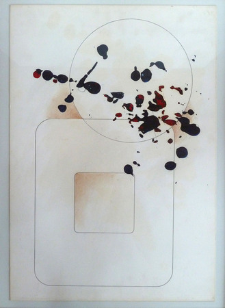 Ölfarbe (rot) und Tinte (schwarz) mit Pinsel (gekleckert) und Feder (geometrisch); Bleistift, Farbstift (rot)- WV-Nr: Z-2007-681