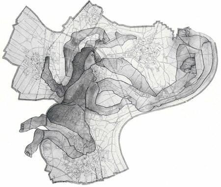 Ätzradierung, Vernis mou und Hartgrundätzung, Stadtplan Meerbusch, Druck: einfarbig, schwarz, auf weißem Papier- WV-Nr: KD-1976-1282