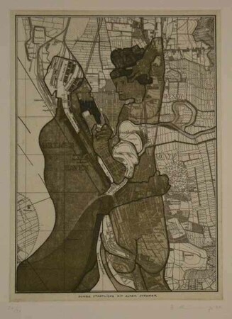Radierung, Vernis mou und Hartgrund Stadtplan Bremerhaven Drucke einfarbig, hellbraun- WV-Nr: KD-1979-1745