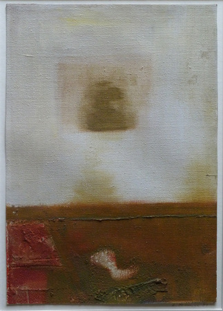 Titel: o. T.Ölfarben und Vogelsand auf Leinwand WV-Nr: M-1957-4553 Gattung: Materialbild Jahr: 1957 Technik: Assemblage Standort: Holger Runge