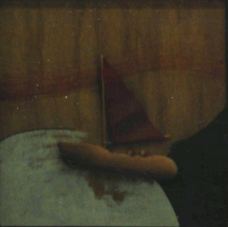Holzplatte als Bildgrund, Schwemmholz und Glaspapier als Segelboot, Acryl (weiß und schwarz)- WV-Nr: M-2000-962
