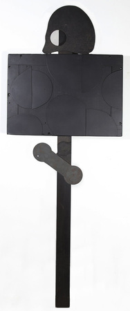 an schwarz bemalten Holzstab schwarz lackierte Pappscheiben und Maschinenschablonen montiert- WV-Nr: O-1982-101