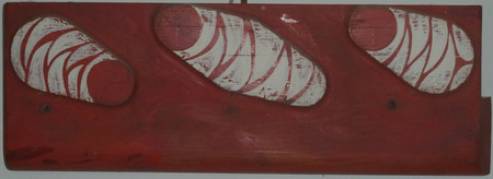 Holzrelief, rot-weiss bemalt